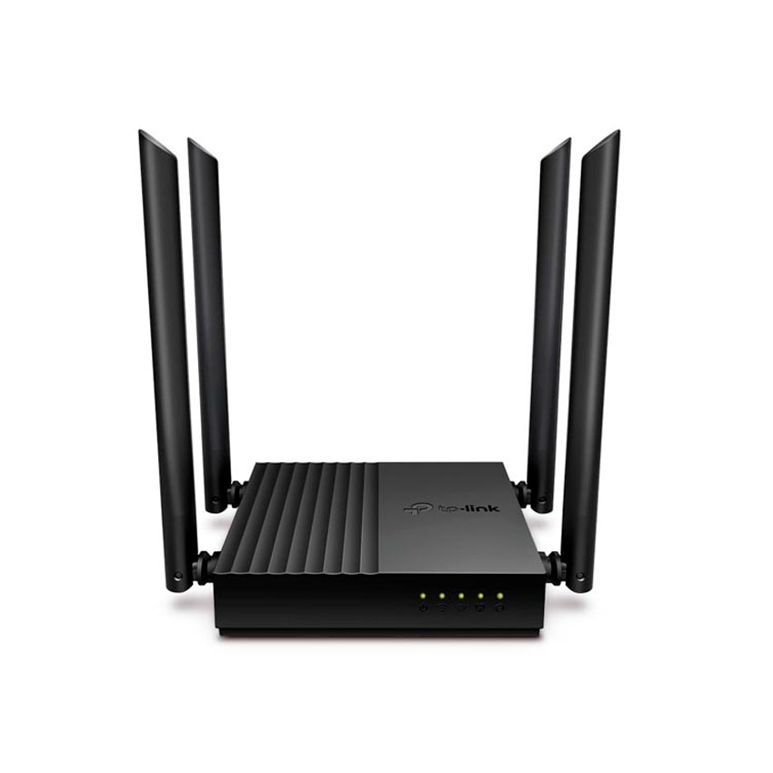 El TP-Link Archer C64 brinda Wi-Fi 5 de doble banda AC1200: 867 Mbps en 5 GHz para streaming 4K y gaming estable, y 400 Mbps en 2.4 GHz para navegación y dispositivos IoT. Sus cuatro antenas externas con Beamforming concentran la señal hacia tus equipos, cubriendo cómodamente hogares de tres dormitorios.