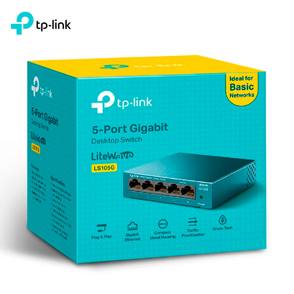 El switch TP-Link LS105G es un switch no administrable de 5 puertos Gigabit diseñado para ampliar de forma rápida y sencilla tu red cableada en el hogar, oficina o negocio. Con 5 puertos 10/100/1000 Mbps con Auto-Negociación y Auto-MDI/MDIX, permite conectar PCs, laptops, smart TV, impresoras de red, cámaras IP y otros dispositivos sin necesidad de configuración avanzada (plug and play).