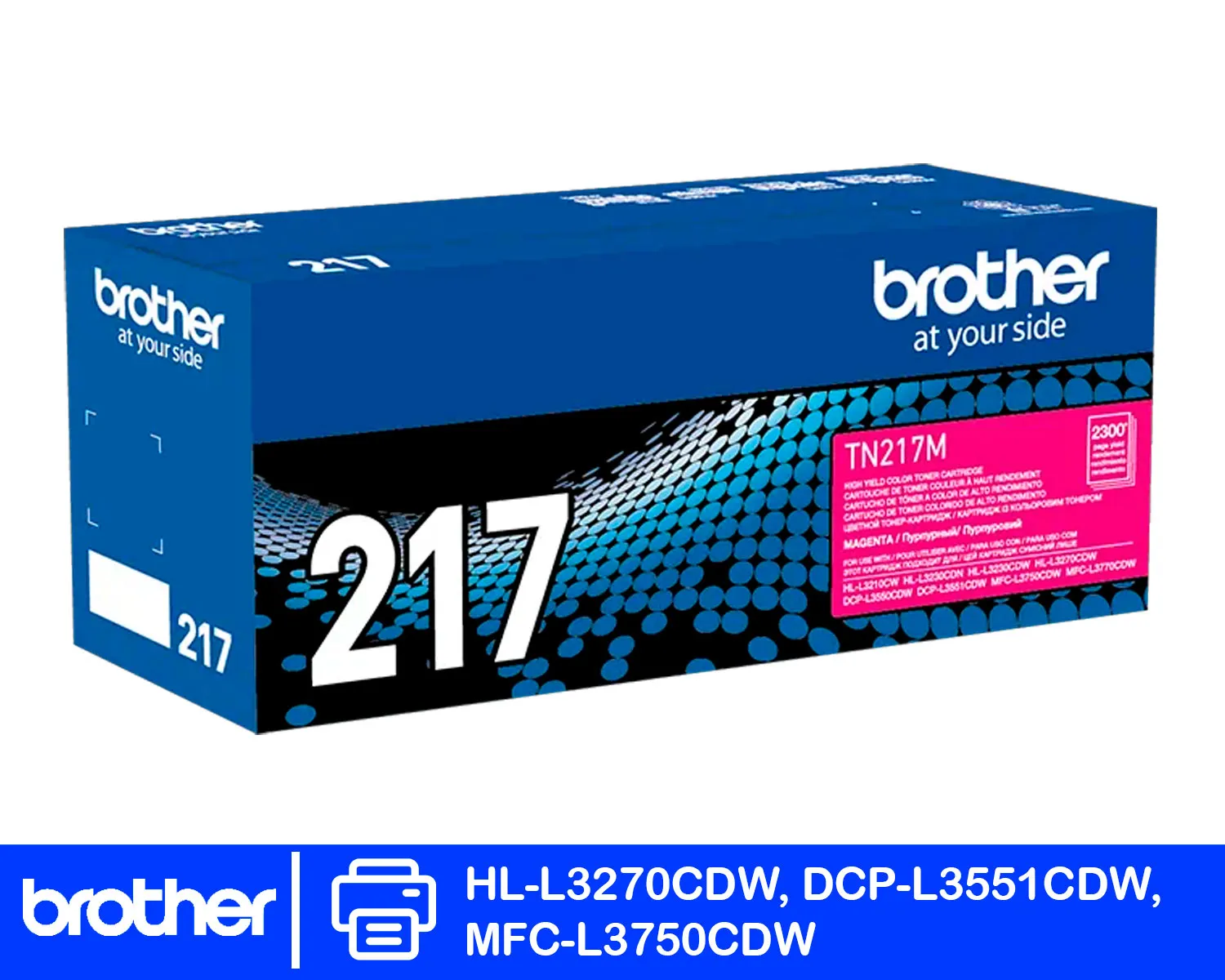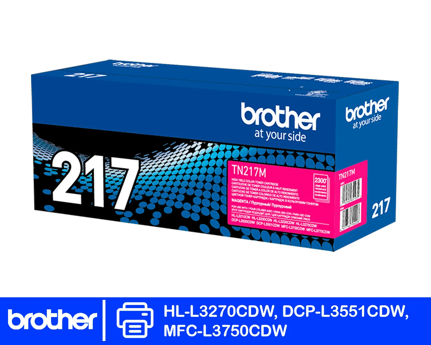 El Tóner Brother TN-217M está optimizado para HL-L3270CDW, DCP-L3551CDW y MFC-L3750CDW. Su formulación OEM mantiene magentas vibrantes y uniformes en presentaciones, folletos y piezas comerciales. Para quienes buscan hl-l3270cdw toner o dcp-l3551cdw toner magenta, este cartucho garantiza compatibilidad total y resultados profesionales.