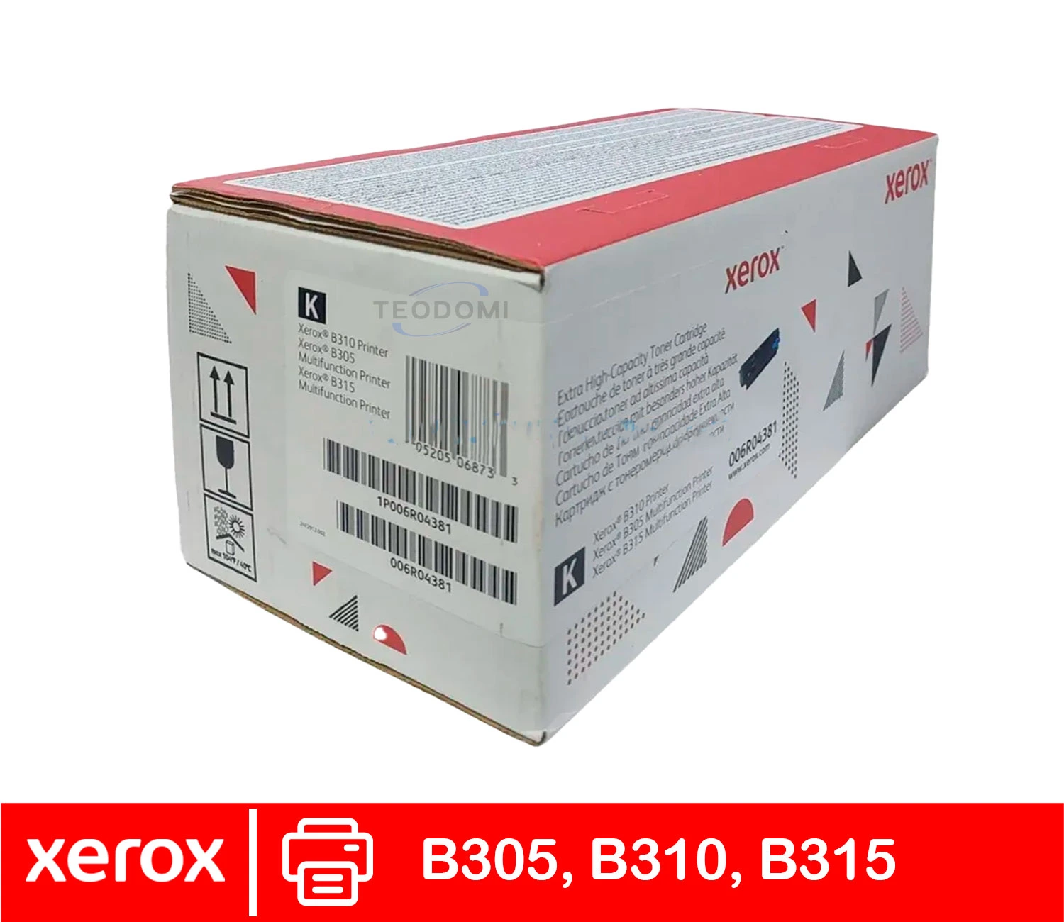 El Tóner Xerox 006R04381 integra formulación de alta pureza para entregar negros profundos y líneas precisas en documentos de uso diario. Su diseño original asegura compatibilidad total con los mecanismos de las impresoras B305/B310/B315, reduciendo paradas por mantenimiento y manteniendo el flujo de trabajo sin interrupciones.
