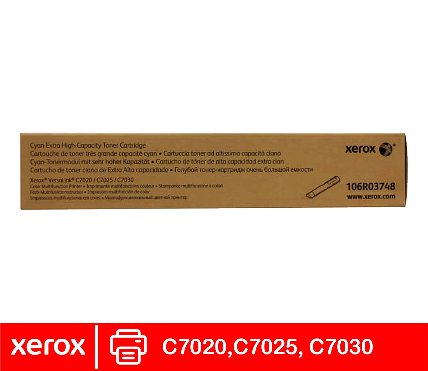 El tóner Xerox 106R03748 cian para VersaLink C7020, C7025 y C7030 ofrece hasta 11,800 páginas.