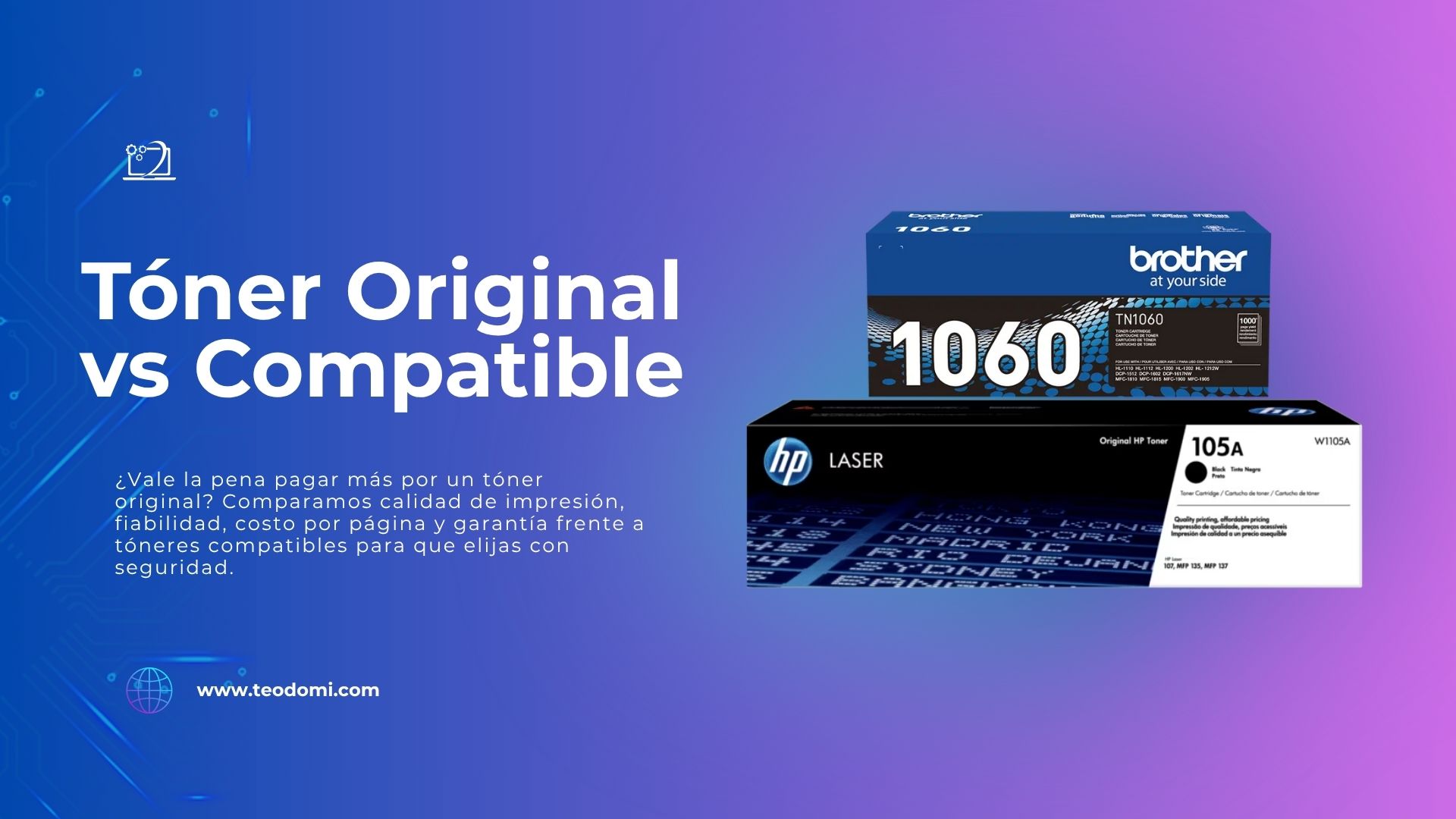 ¿Vale la pena pagar más por un tóner original? En esta guía comparativa analizamos calidad de impresión, rendimiento ISO, fiabilidad, costo por página y garantía frente a los tóneres compatibles más comunes (HP, Brother, Xerox, Kyocera, Lexmark). Aprende a identificar qué opción conviene según tu equipo y volumen de impresión.